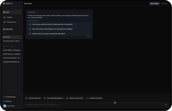 With Eight50 it can. Get crucial information in seconds, turn everyone into a data user, detect issues before they happen, proactive not reactive, ops copilot for the warehouse, realtime control, speed of access, reason across all your systems – multi-system action, employ an AI army.
